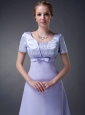 Modest Lilac Column V-neck Mother Of The Bride Dress Chiffon Beading Floor-length