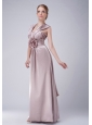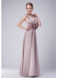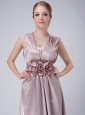 Home >  Special Occasion Dresses >  Mother of the Bride Dresses > Modest Lilac Empire V-neck Mother Of The Bride Dress Taffeta Hand Made Flowers Floor-length