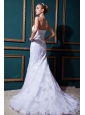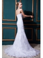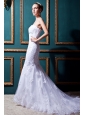 Modest Mermaid Strapless Brush Train Lace Beading Wedding Dress