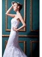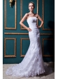 Home >  Wedding Dresses >  Elegant Wedding Dresses > Modest Mermaid Strapless Brush Train Lace Beading Wedding Dress