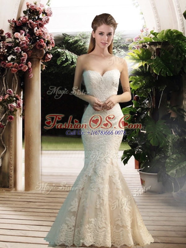 Modest Mermaid Sweetheart Lace Wedding Dresses with Floor Length