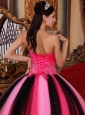 If you ever wanted to wear a rainbow, this dress could be as close as you'll come! It features a strapless bodice with floral shape beading and sweetheart neckline. Many exquisite black and white paillettes around the waist part adorn the mid-section of the dress, leading up to the focal point. The focal point is, no doubt, the fabulous A-line skirt. It's made from yards and yards of multicolored tulle that create a fantastic rainbow effect. The corset style bodice is finished with a lace up tie back.