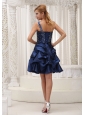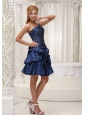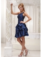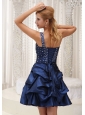 Star in your own fairytale at your prom or formal! This navy blue prom dress has one shoulder bodice. The ruched, fitted bodice features the scattered crystals. The short skirt was made in pick ups which creating a enchanting styl. Mini-length, simple yet elegant. Miss it equal to eclipse your wonderful day!