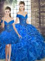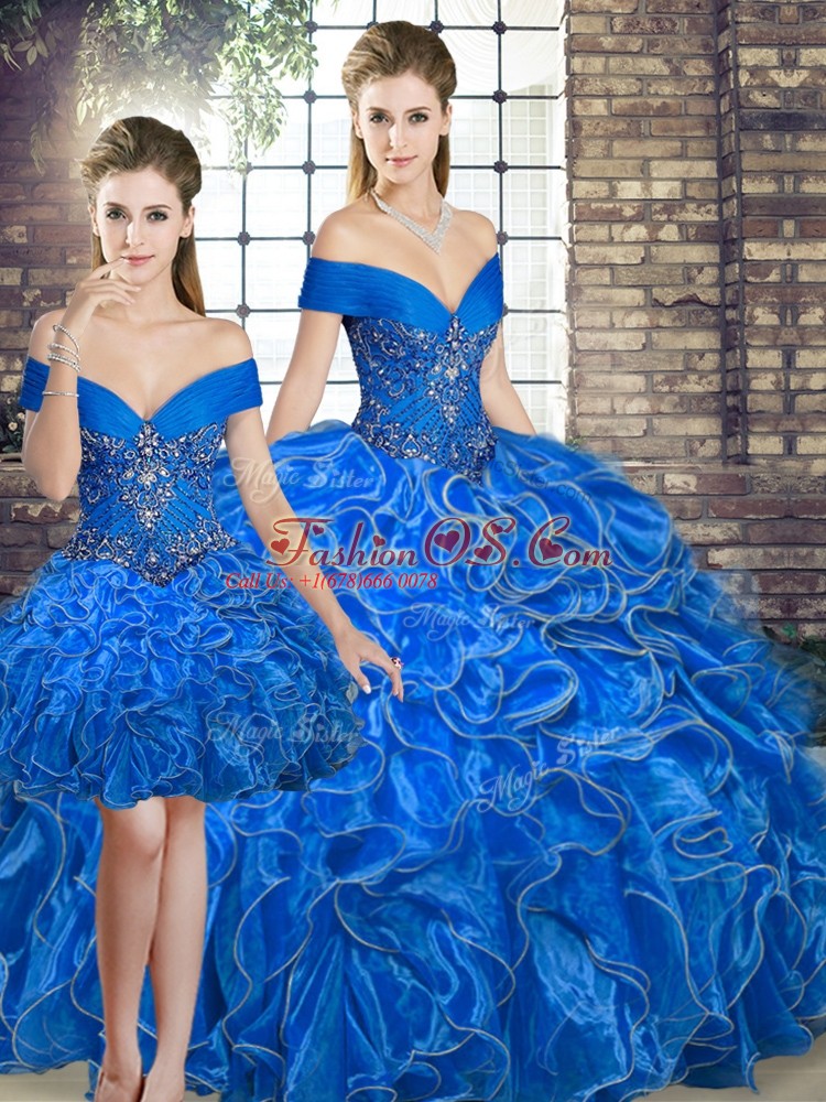 Modest Off The Shoulder Sleeveless Organza Sweet 16 Dresses Beading and Ruffles Lace Up