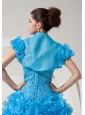 Modest Open Front and Ruffles Quinceanera Jacket in Baby Blue For 2014
