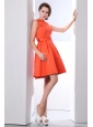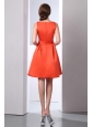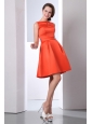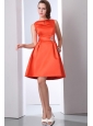 Modest Orange Red Bateau Beading Prom Dress Mini-length Taffeta