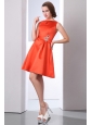 Home >  Prom Dresses >  Modest Prom Dresses > Modest Orange Red Bateau Beading Prom Dress Mini-length Taffeta