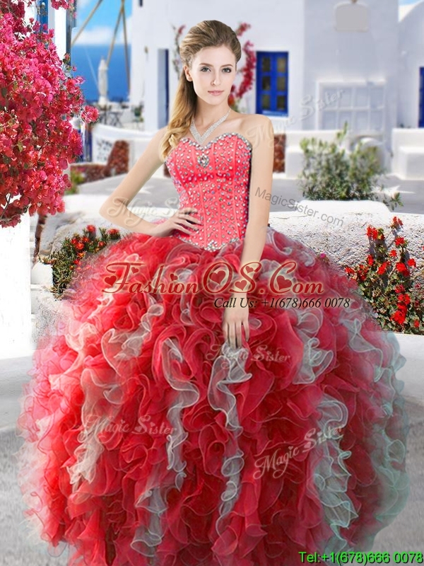 Modest Organza Detachable Quinceanera Dresses with Beading and Ruffles