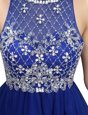 Modest Organza High-neck Sleeveless Zipper Beading Dress for Prom in Royal Blue