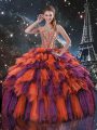 Modest Organza Sweetheart Sleeveless Lace Up Beading and Ruffles and Ruffled Layers Quinceanera Gowns in Multi-color
