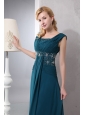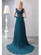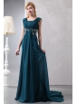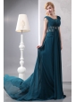 Modest Peacock Green Empire Prom Dress Straps Court Train Chiffon Beading