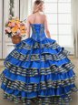 Modest Pink And White Quinceanera Gowns Military Ball and Sweet 16 and Quinceanera and For with Beading and Ruffles Sweetheart Sleeveless Lace Up