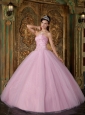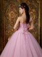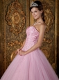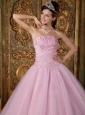 Home >  Quinceanera Dresses >  Sweet 16 Dresses > Modest Pink Sweet 16 Dress Strapless Appliques Tulle Ball Gown