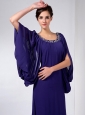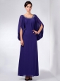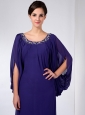 Modest Purple Mother Of The Bride Dress Column Scoop Beading Ankle-length Chiffon