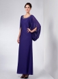 Home >  Special Occasion Dresses >  Mother of the Bride Dresses > Modest Purple Mother Of The Bride Dress Column Scoop Beading Ankle-length Chiffon