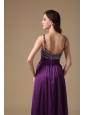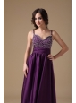 Modest Purple Straps Prom Dress Chiffon Beading