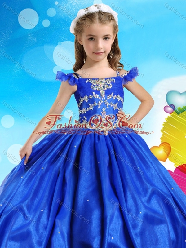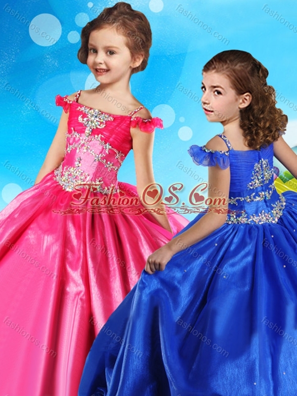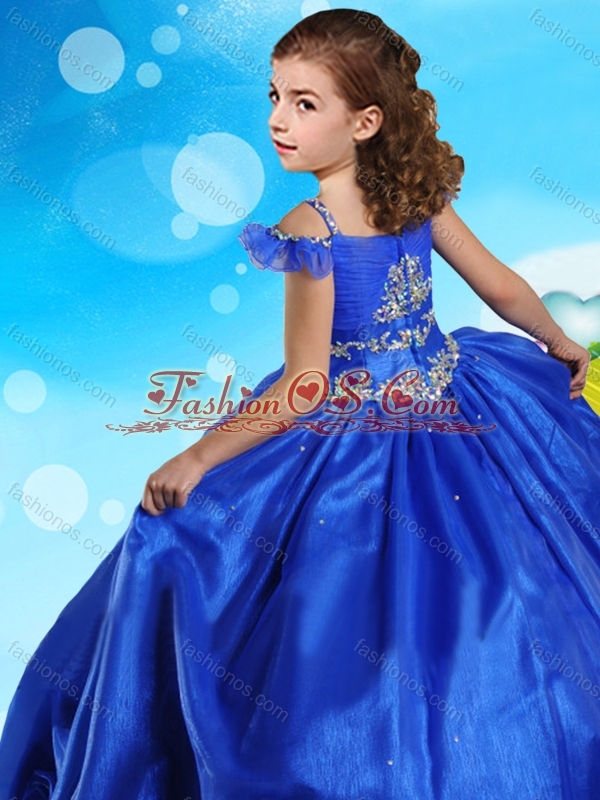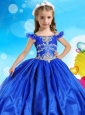 Modest Really Puffy Beaded Little Girl Pageant Dress with Off the Shoulder