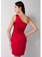 Modest Red Column One Shoulder Ruch Bridesmaid Dress Mini-length Elastic Woven Satin