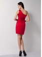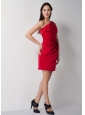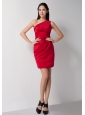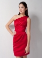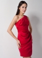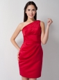 Home >  Bridesmaid Dresses >  Cheap Bridesmaid Dresses > Modest Red Column One Shoulder Ruch Bridesmaid Dress Mini-length Elastic Woven Satin