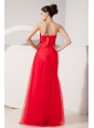 Home >  Prom Dresses >  Modest Prom Dresses > Modest Red Column Strapless Prom Dress Tulle Rush Floor-length
