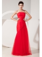Modest Red Column Strapless Prom Dress Tulle Rush Floor-length
