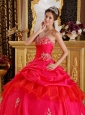 Modest Red Quinceanera Dress Sweetheart Taffeta Beading Ball Gown