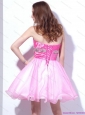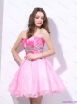 Modest Rose Pink 2015 Mini Length Prom Dresses with Beading and Ruching