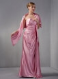 Modest Rose Pink Column Mother Of The Bride Dress Sweetheart Ruch Floor-length Taffeta