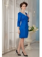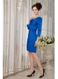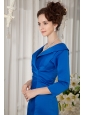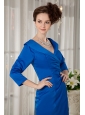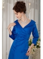 Modest Royal Blue Mother Of The Bride Dress Column V-neck Taffeta Ruch Knee-length