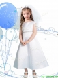 Modest Scoop Cap Sleeves Satin Flower Girl Dress with Sashes