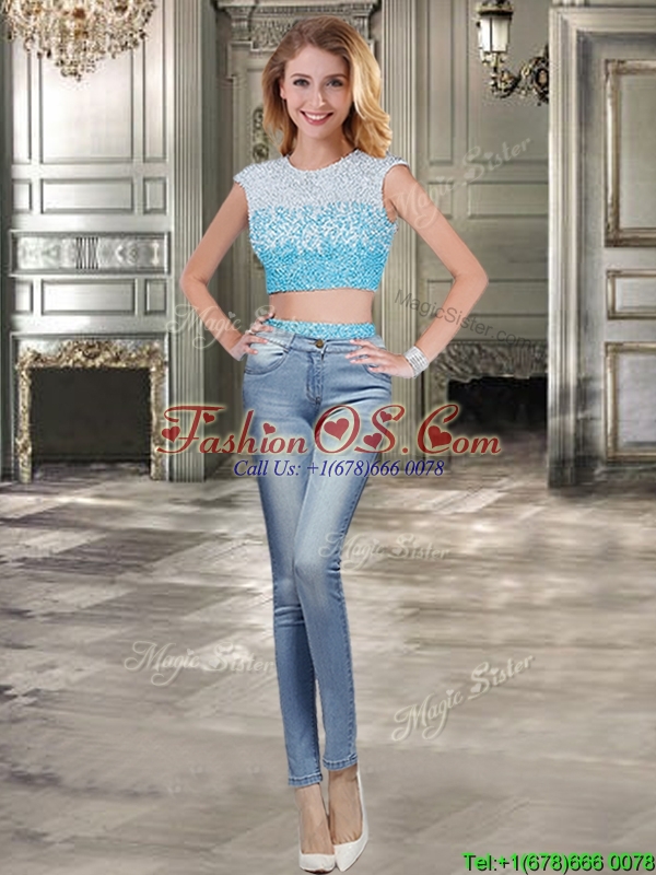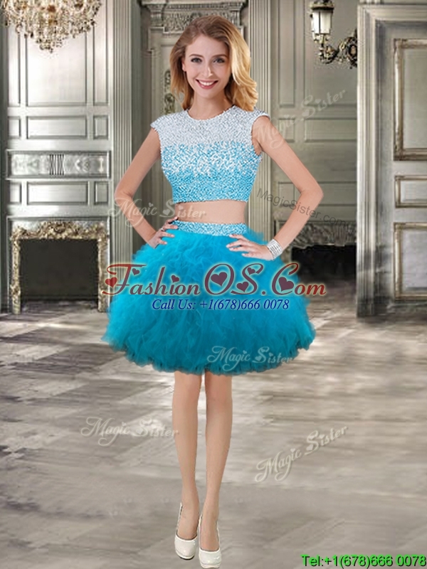 Modest Scoop Cap Sleeves Teal Detachable Sweet 16 Dresses with Beading and Ruffles