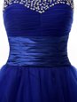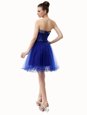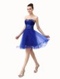 Modest Sequins Ruffled A-line Evening Dress Royal Blue Sweetheart Organza Sleeveless Knee Length Lace Up