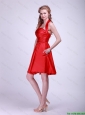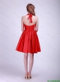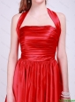 Modest Short Ruched Red Prom Dresses with Halter Top