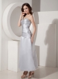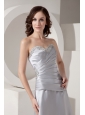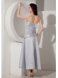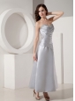 Modest Silver Ankle-length Mother of The Bride Dress Princess Sweetheart Satin Beading