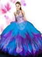 Modest Sleeveless Beading and Ruffles Backless Quince Ball Gowns