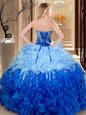 Modest Sleeveless Lace Up Floor Length Embroidery and Ruffles 15th Birthday Dress