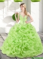 Modest Spring Green 15 Quinceanera Dresses with Beading and Rolling Flowers