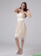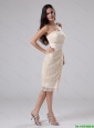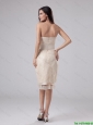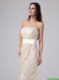 Modest Strapless Laced and Belt Tea-length Prom Gowns in Champagne