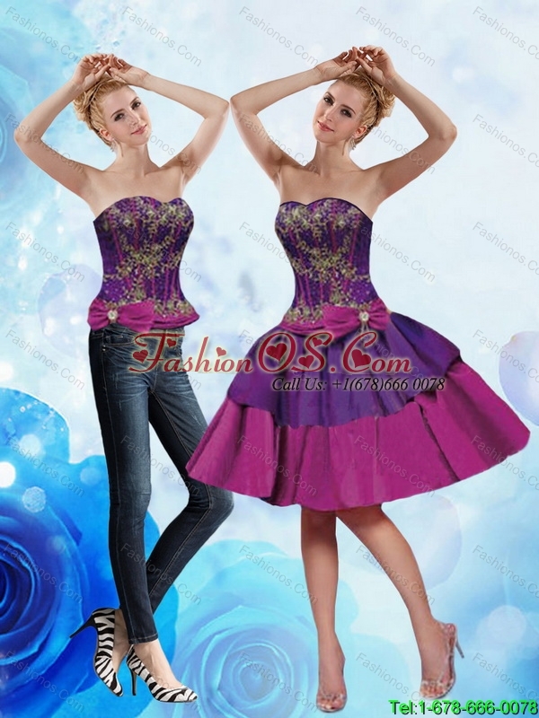 Home >  Prom Dresses >  Detachable Prom Dresses > Modest Strapless Multi Color 2015 Detachable Prom Dress with Appliques and Bowknot