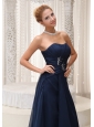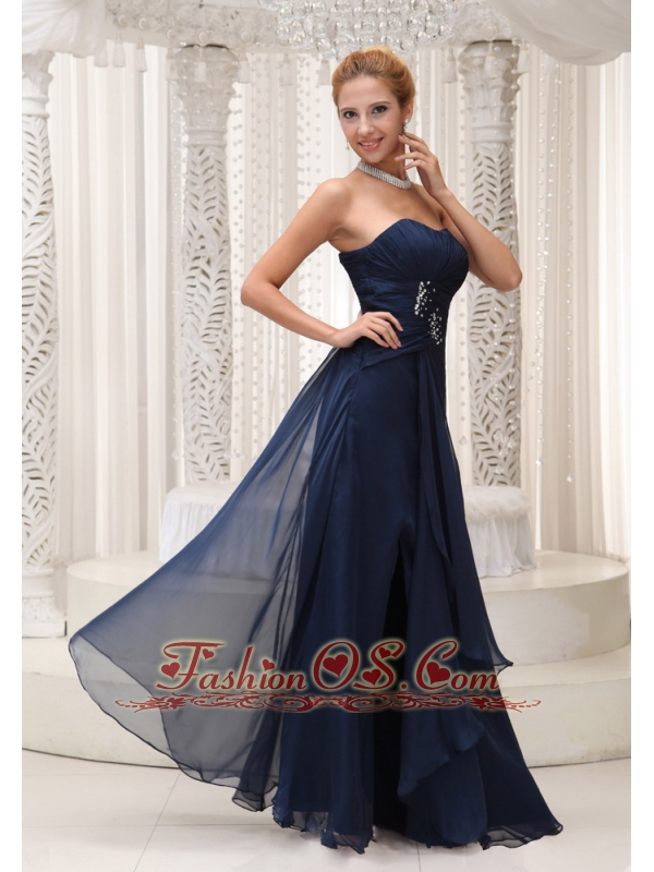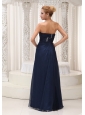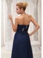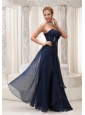 Elegant and classic navy blue prom dress. It features a sweetheart neckline and ruched bodice which is decorated by the bead work on the waist and on the back. If there is a kind of fabric that ever girl want to wear, then it must be chiffon. Light, dreamful and flowy chiffon. The dress sways beautifully across the floor when you move, as if you're floating on air. The hidden zipper up back secures the dress in place.