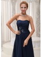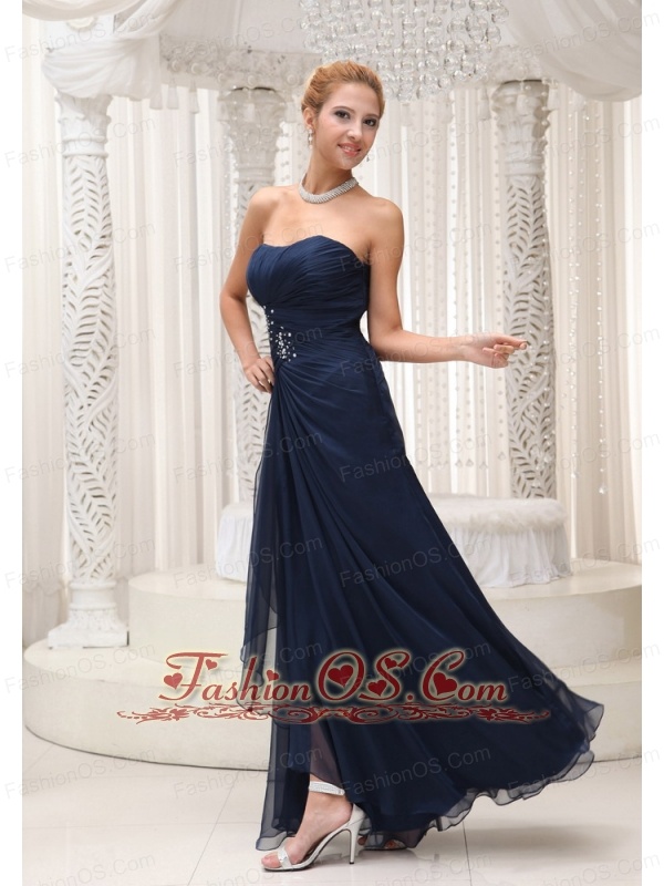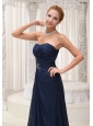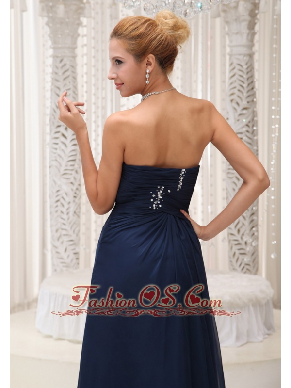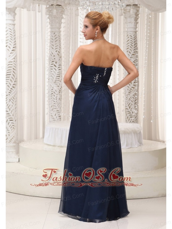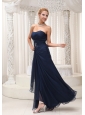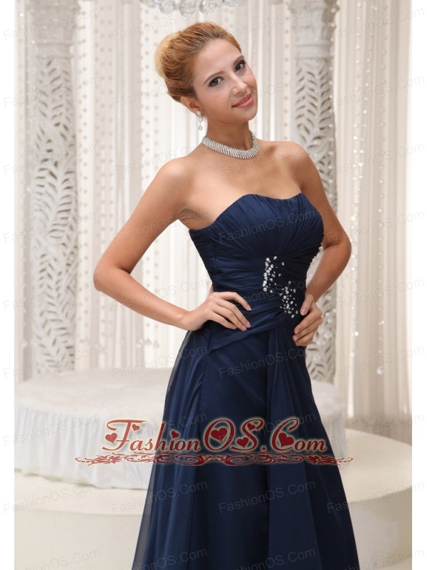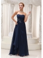 Modest Strapless Navy Blue Chiffon For Bridesmaid Dress Beaded Decorate Waist