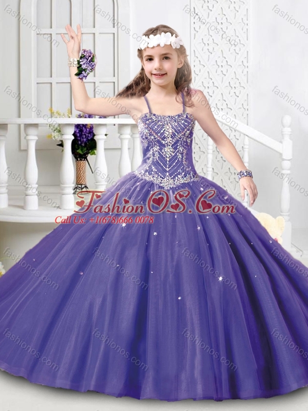 Modest Straps Beaded Mini Quinceanera Dress in Tulle for 2016