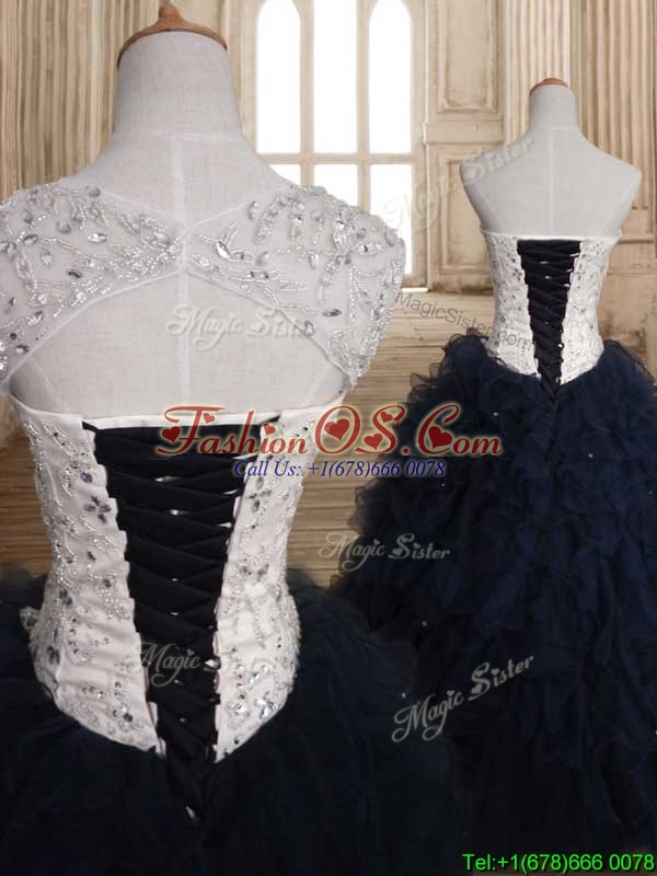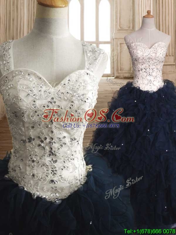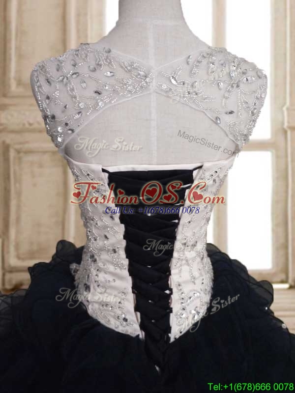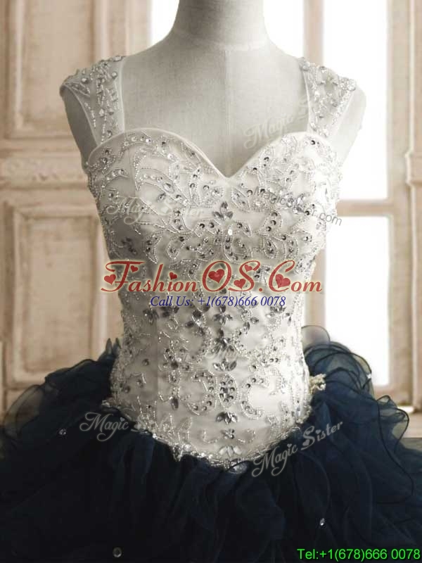 Modest Straps Organza Sweet 16 Dress with Beading and Ruffles