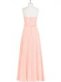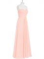 Modest Sweetheart Sleeveless Dress for Prom Floor Length Lace and Appliques Pink Chiffon