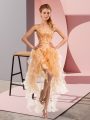 Home >  Special Occasion Dresses >  Cocktail Dresses > Modest Sweetheart Sleeveless Lace Up Club Wear Gold Organza