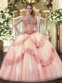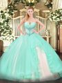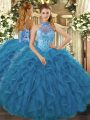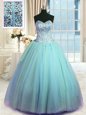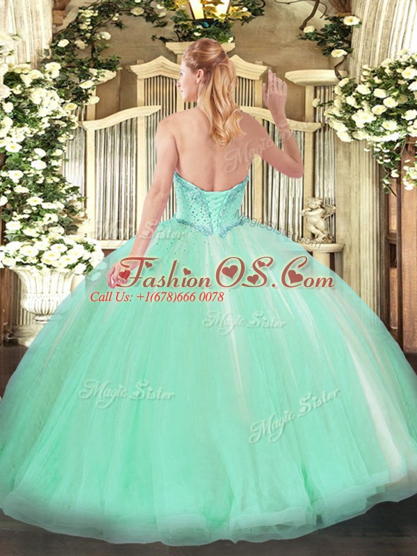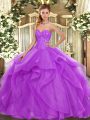 Modest Sweetheart Sleeveless Tulle Sweet 16 Dresses Beading and Ruffles Lace Up