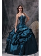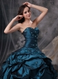 Home >  Quinceanera Dresses >  Popular Quinceanera Dresses > Modest Teal Ball Gown Sweetheart Quinceanea Dress Taffeta Appliques Floor-length