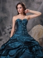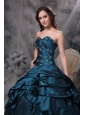 Modest Teal Ball Gown Sweetheart Quinceanea Dress Taffeta Appliques Floor-length