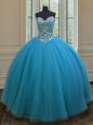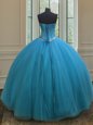 Modest Teal Sleeveless Tulle Lace Up Quinceanera Dress for Military Ball and Sweet 16 and Quinceanera