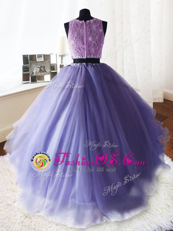 Home >  Quinceanera Dresses >  Detachable Quinceanera Skirts > Modest Three Piece Lavender 15th Birthday Dress Military Ball and Sweet 16 and Quinceanera and For with Beading and Lace and Ruffles Scoop Sleeveless Brush Train Zipper